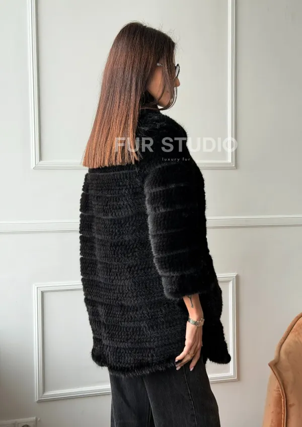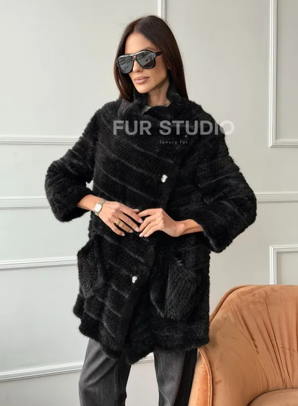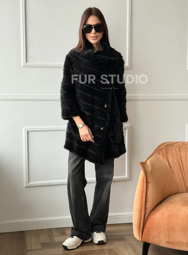 Меховое пальто из вязаной норки 102758