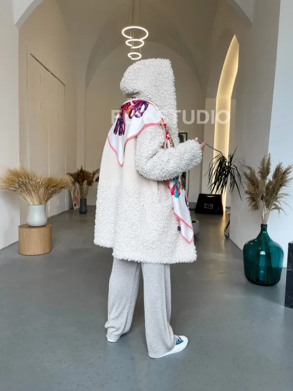 Шуба оверсайз из экомеха с капюшоном 100250